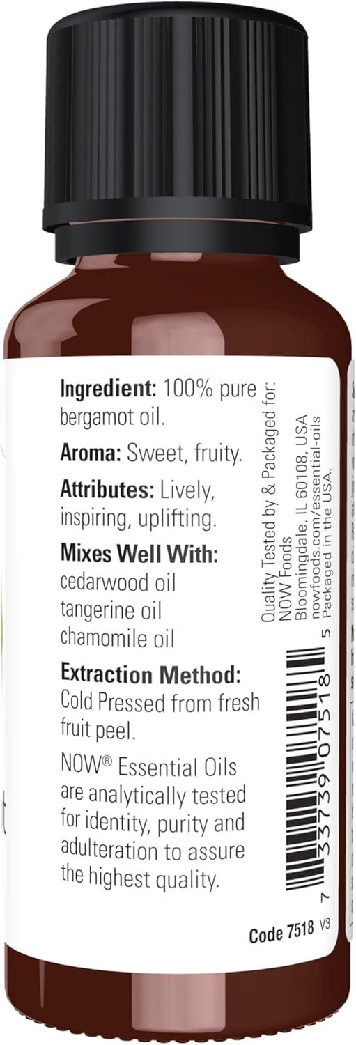 NOW Essential Oils, Carrot Seed Oil, Grounding Aromatherapy Scent, Steam Distilled, 100% Pure, Vegan, Child Resistant Cap, 1-Ounce(Bergamot)