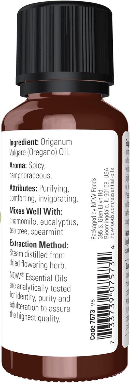 NOW Essential Oils, Oregano Oil, Comforting Aromatherapy Scent, Steam Distilled, 100% Pure, Vegan, Child Resistant Cap, 1-Ounce(1 Fl Oz (Pack of 1))