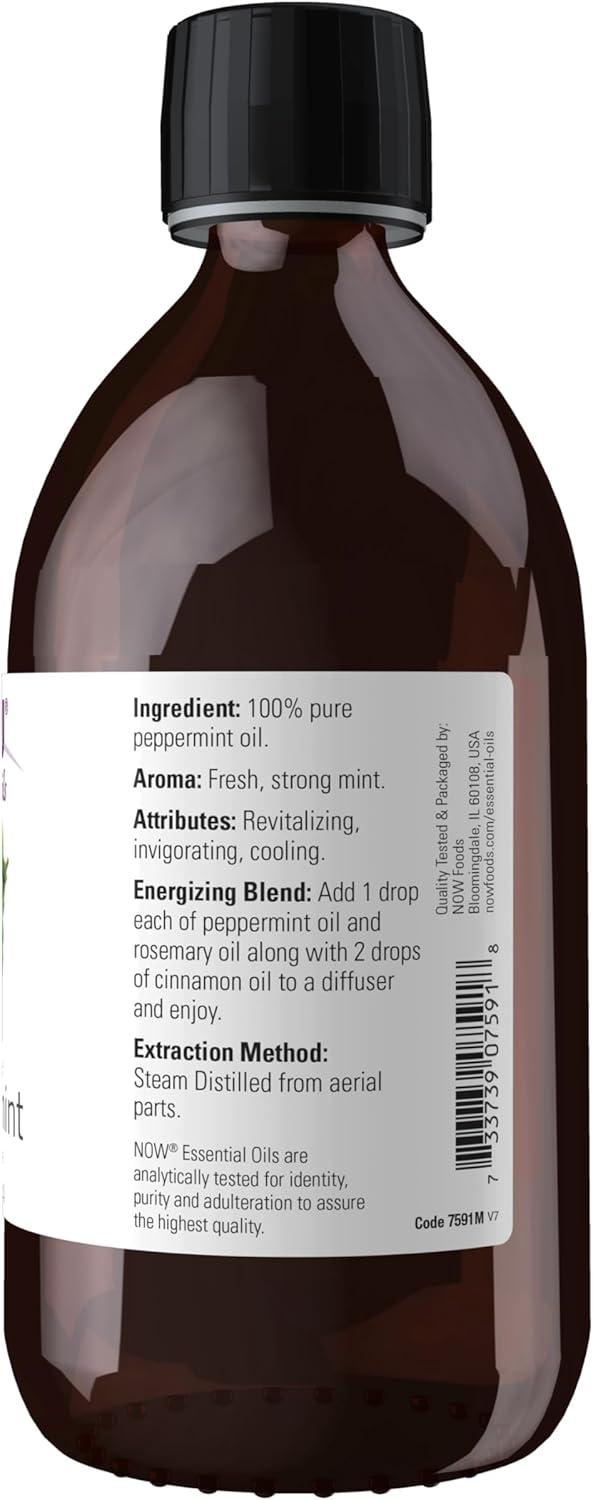 NOW Essential Oils, Peppermint Oil, Invigorating Aromatherapy Scent, Steam Distilled, 100% Pure, Vegan, Child Resistant Cap, 1-Ounce(16 Fl Oz (Pack of 1))