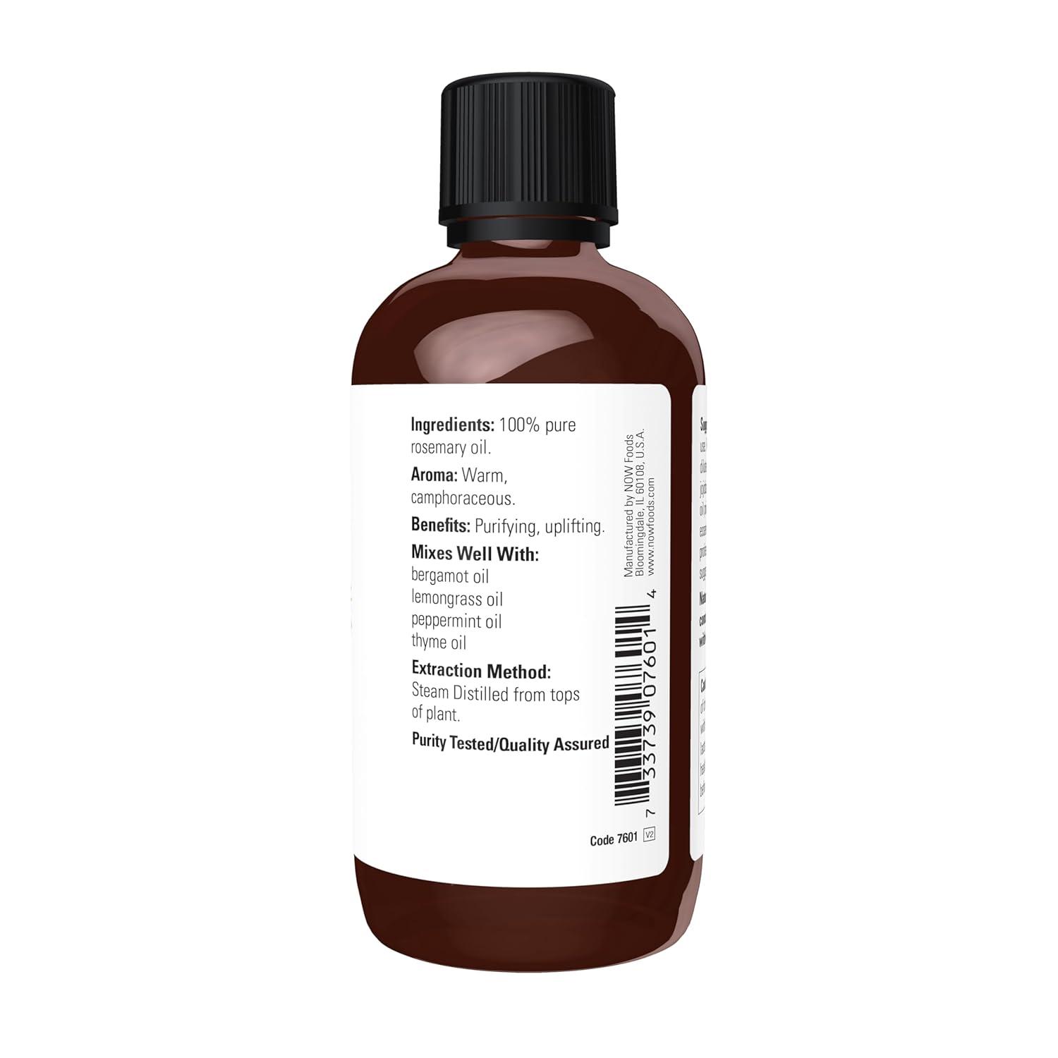 NOW Essential Oils, Rosemary Oil, Purifying Aromatherapy Scent, Steam Distilled, 100% Pure, Vegan, Child Resistant Cap, 1-Ounce(4 Fl Oz (Pack of 1))