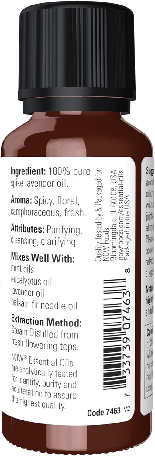 NOW Essential Oils, Spike Lavender, Floral Aromatherapy Scent, Steam Distilled, 100% Pure, Vegan, Child Resistant Cap, 1-Ounce