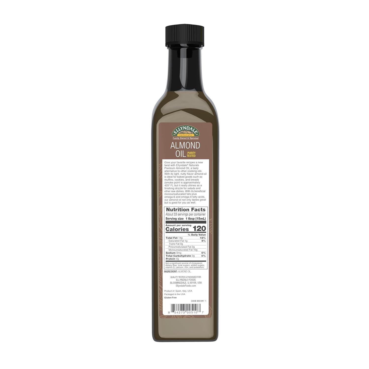 Give your favorite recipes a new twist with Ellendale Naturals Premium Almond Oil, a tasty and healthful alternative to other cooking oils. With its light, nutty flavor Almond Oil is ideal for baked goods such as muffins, cookies, and breads, but it really shines as a finishing drizzle for salads and other raw dishes. With its healthy monounsaturated fat plus Omega-6 and Omega-9 fatty acids, as well as Vitamin E, our Almond Oil not only tastes great but is good for you as well.