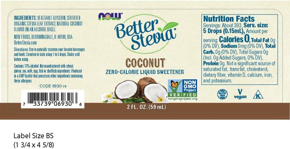 NOW Foods BetterStevia Coconut Zero-Calorie Liquid Sweetener, Keto Friendly, Suitable for Diabetics, No Erythritol, 2-Ounce(Coconut)