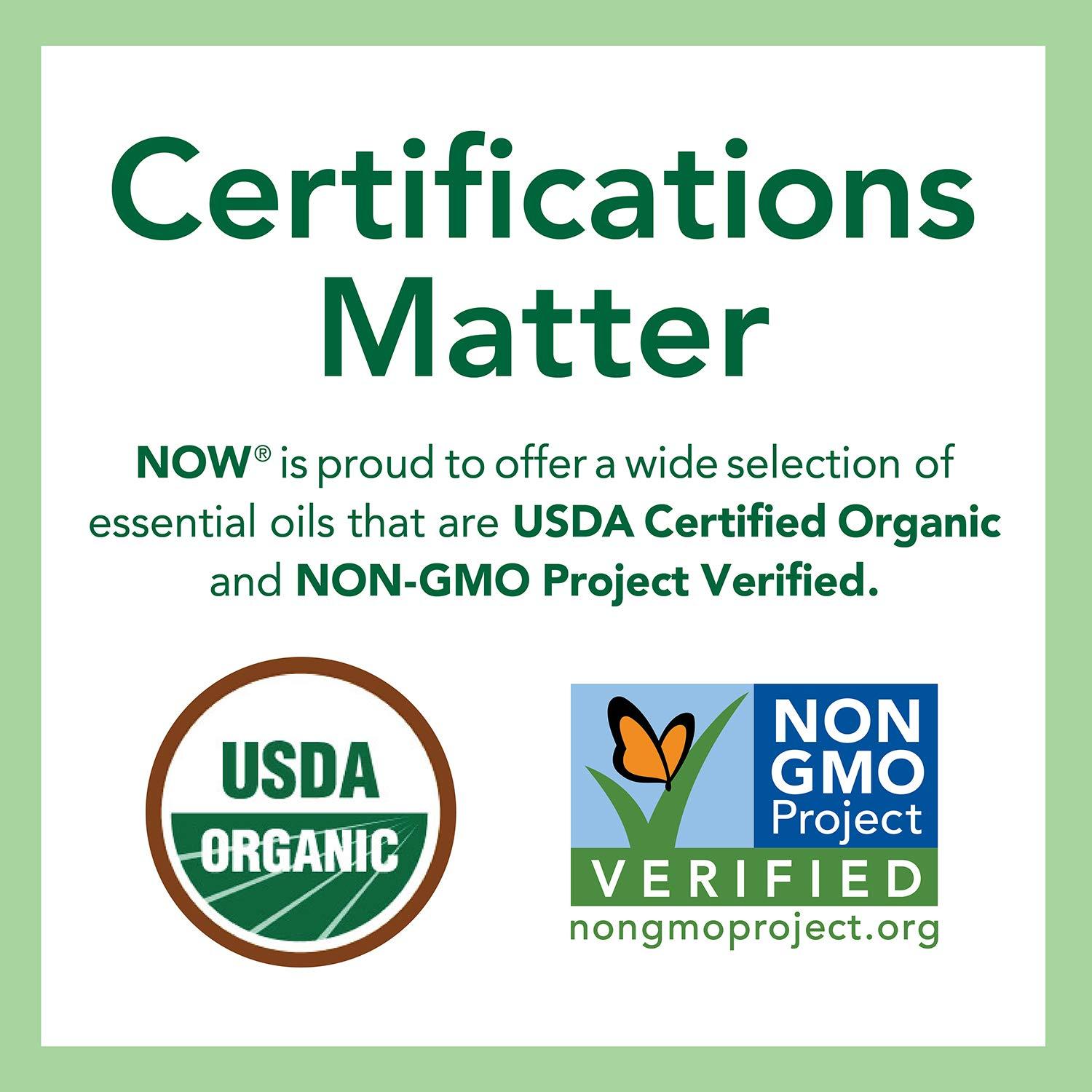 CERTIFICATIONS/CLASSIFICATIONS: Non-GMO Project Verified, USDA Organic, Vegan/Vegetarian, Paraben Free, Nut Free, Gluten Free, Cold Pressed, Hexane Free, Steam Distilled