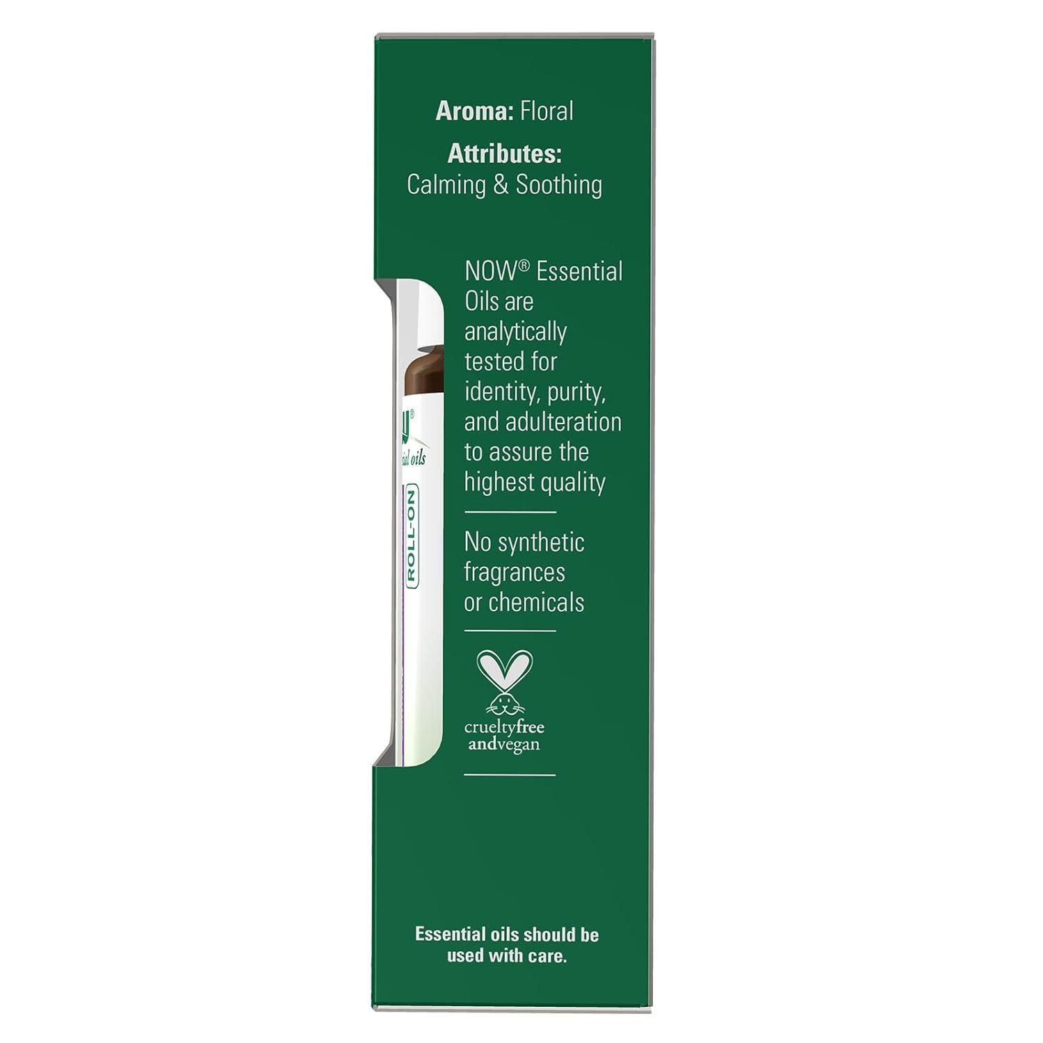NOW Foods Essential Oils, Lavender Roll-On, Certified Organic, Calming Blend, Steam Distilled, Topical Aromatherapy, 10-mL(Lavender)