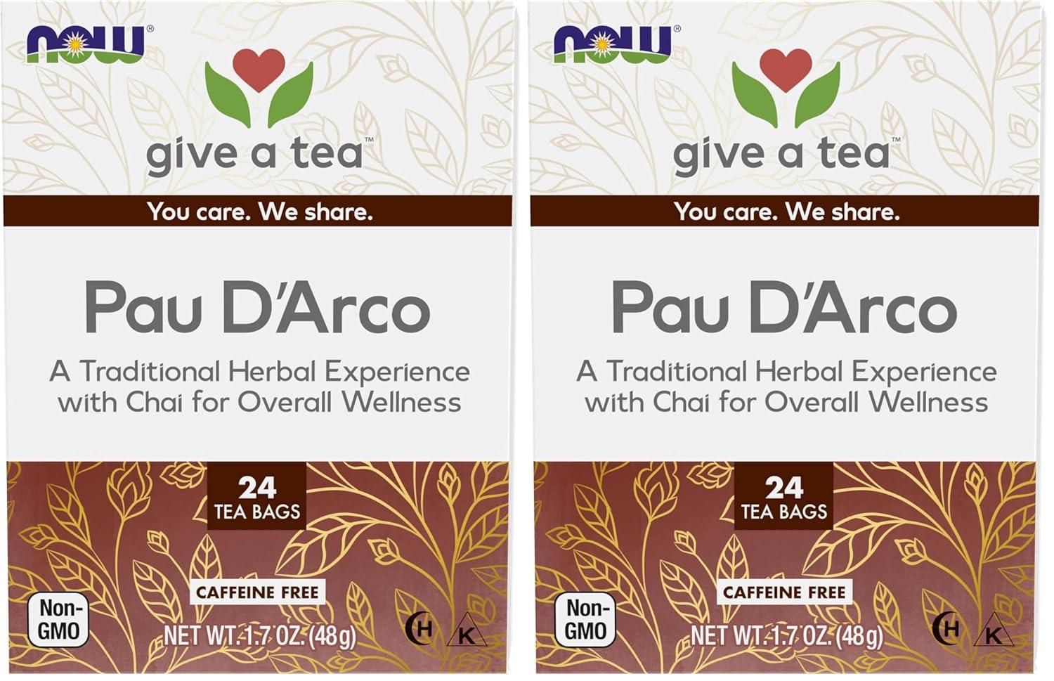 NOW Foods Give a Tea™ Ojibwa Tea, Herbal, Caffeine-Free, 24 bags, traditional North American blend for overall wellness(Pau D’Arco)