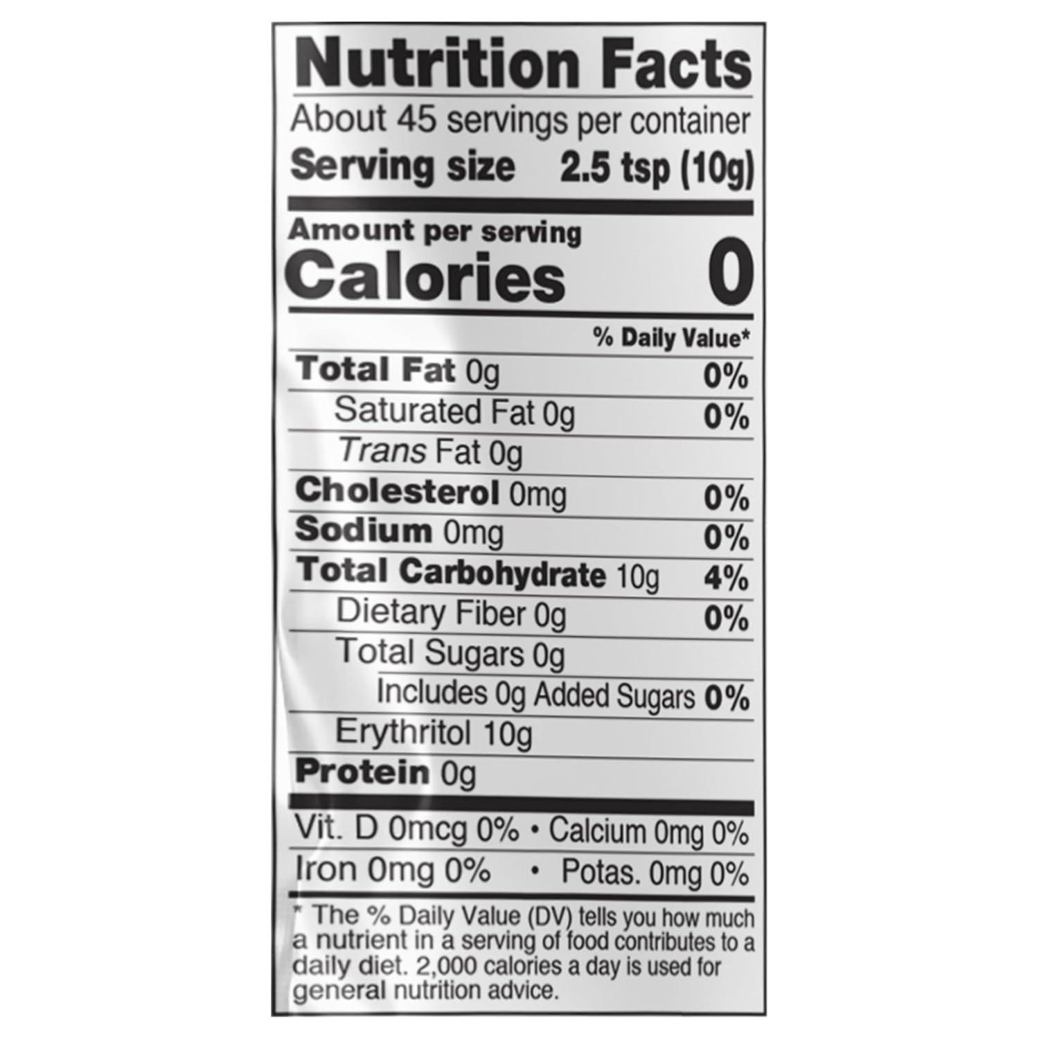 ZERO CALORIES/LOW GLYCEMIC IMPACT: When you substitute organic, non-GMO erythritol for sugar, you get a refreshing natural sweetener with a low glycemic impact that won't contribute to tooth decay