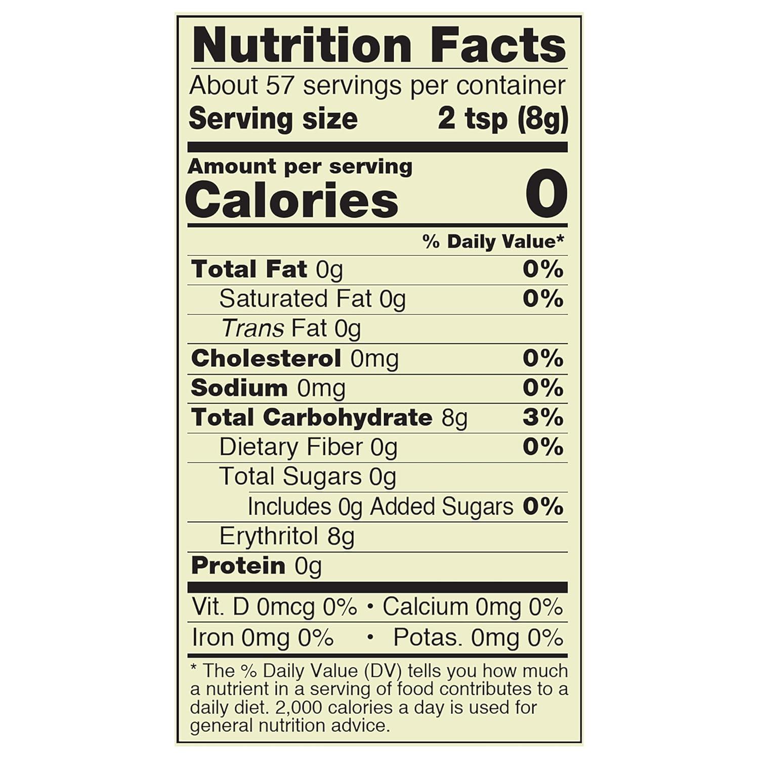 Zero Net Carbs† Zero Calories No Aspartame, No Sucralose, No Fake Stuff Monk fruit is nature's perfect substitute for sugar. You'll be pleasantly surprised by how great it tastes, because it's deliciously sweet without any bitter aftertaste like that of other alternative sweeteners. At zero calories and zero glycemic impact, NOW® Organic Monk Fruit with Erythritol is perfect for keto and other no-sugar diets. Add it to your favorite beverage, yogurt, oatmeal, in your recipes, or any time you need to add a touch of delicious sweetness!