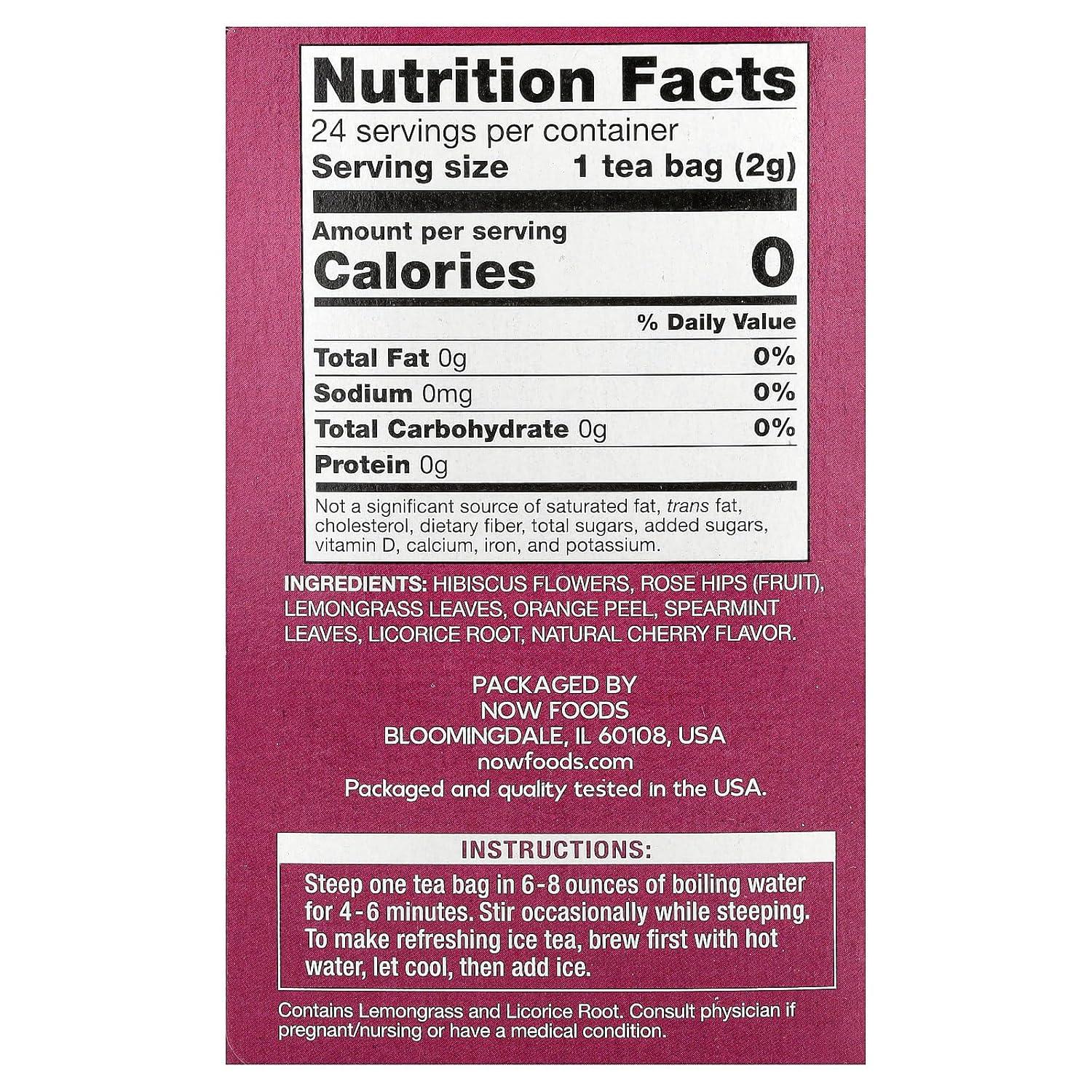 NOW Foods, Organically Hip Hibiscus™ Tea, Caffeine-Free, Non-GMO, No Added Colors, Preservatives or Sugars, Premium Unbleached Tea Bags with our No-Staples Design, 24-Count(Heavenly Hip Hibiscus)