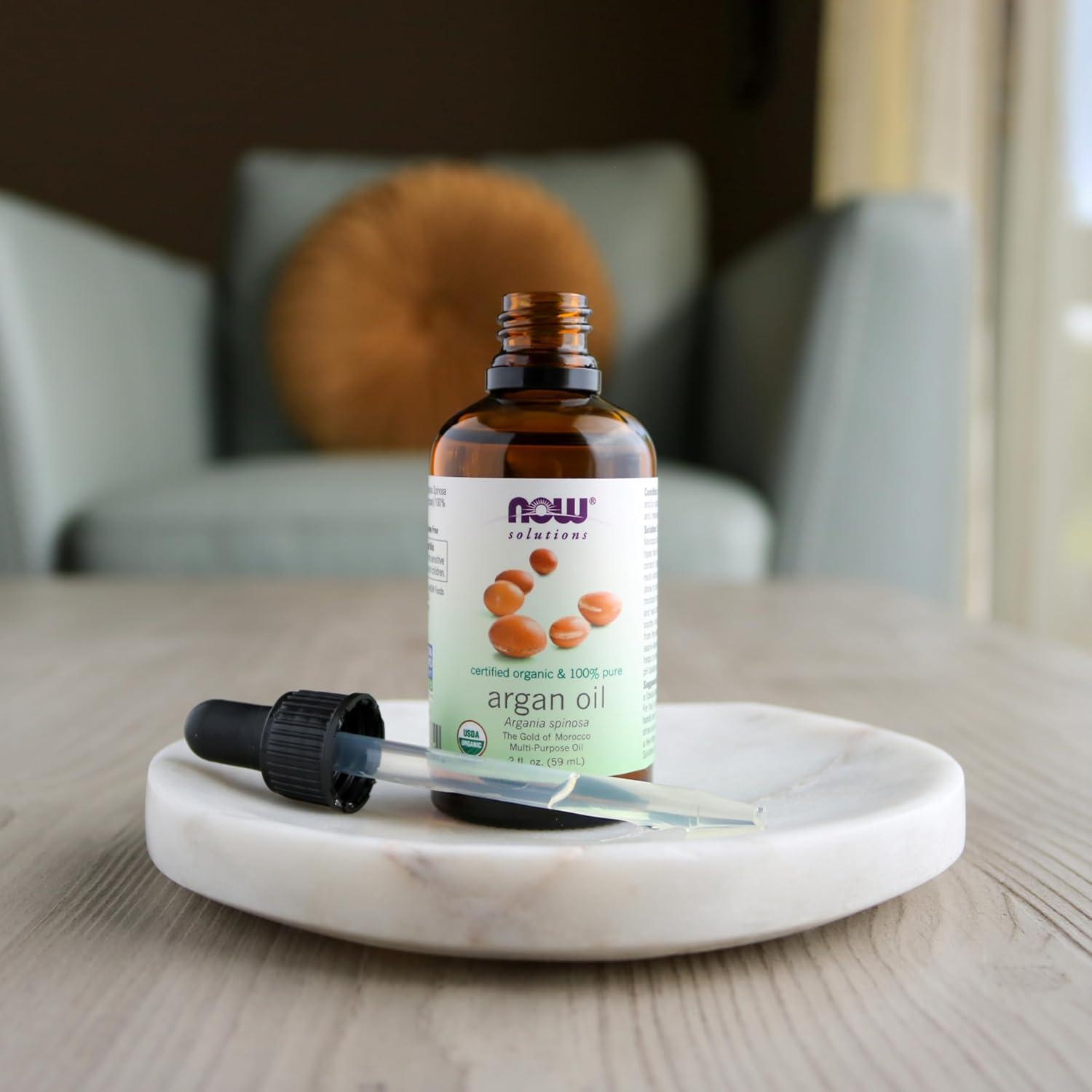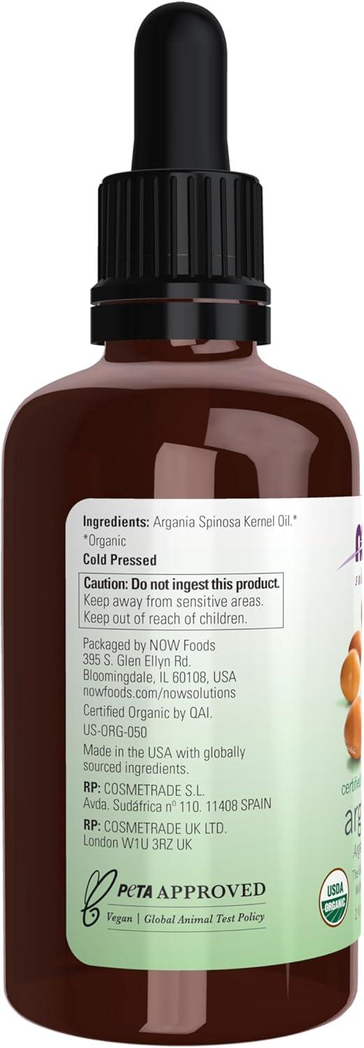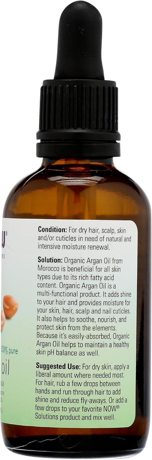 Argania spinosa The Gold of Morocco Multi-Purpose Oil Condition: For dry hair, scalp, skin and/or cuticles in need of natural and intensive moisture renewal. Solution: Organic argan oil from Morocco is beneficial for all skin types due to its rich fatty acid content. Organic argan oil is a multi-functional product. It adds shine to your hair and provides moisture for your skin, hair, scalp and nail cuticles. It also helps to soothe, nourish, and protect skin from the elements. Because it’s easily-absorbed, organic argan oil helps to maintain a healthy skin pH balance as well. Ingredients: Organic Argania Spinosa (Argan) Kernel Oil (Moroccan) (pure) (tree nut). Certified Organic by QAI. US-ORG-050