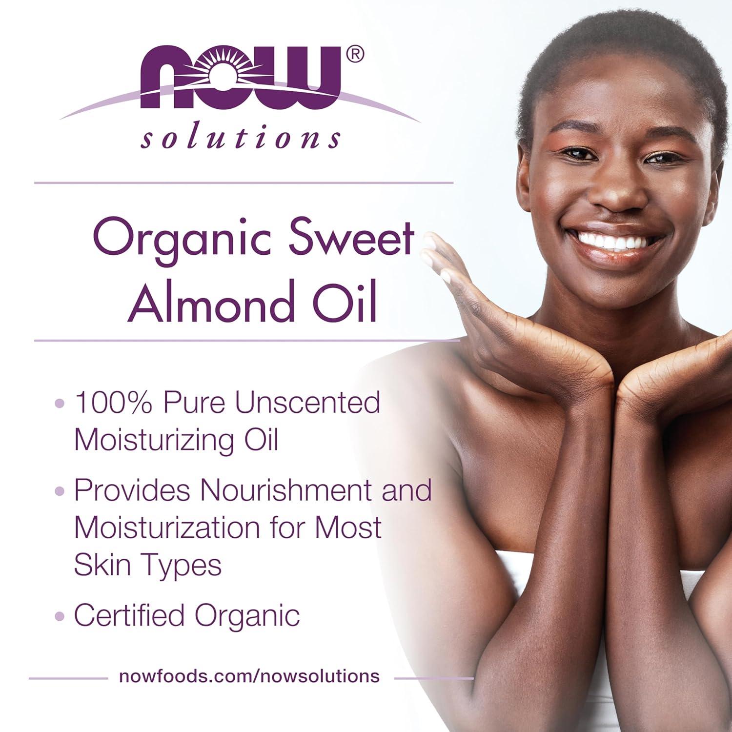 NOW Foods Solutions, Organic Sweet Almond Oil, 100% Pure Moisturizing Oil, Promotes Healthy-Looking Skin, Unscented Oil, 8-Ounce