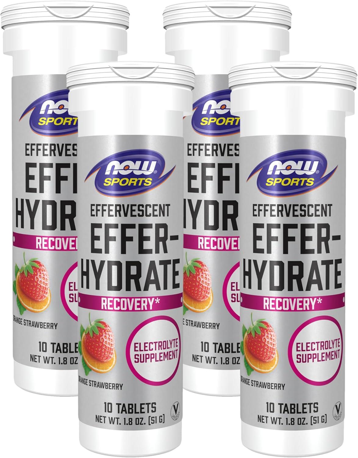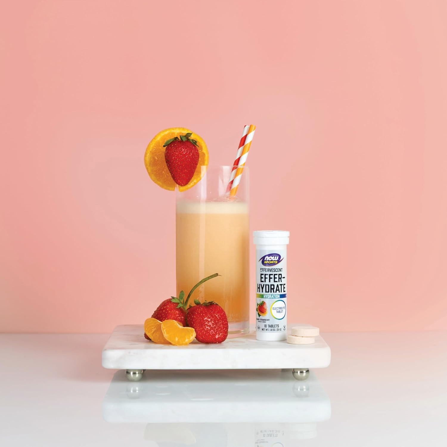 NOW Foods Sports Nutrition, Effervescent Effer-Energy, Electrolyte Supplement, Energy*/ Recovery*, Tropical Punch, 10 Tablets(Orange strawberry)