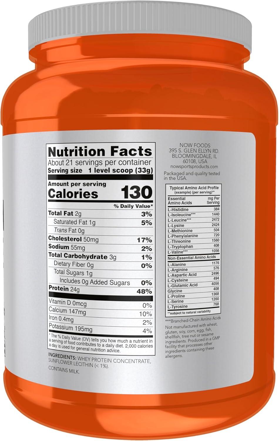 NOW Foods Sports Nutrition, Whey Protein Concentrate, 24 g With BCAAs, Unflavored Powder, 1.5-Pound