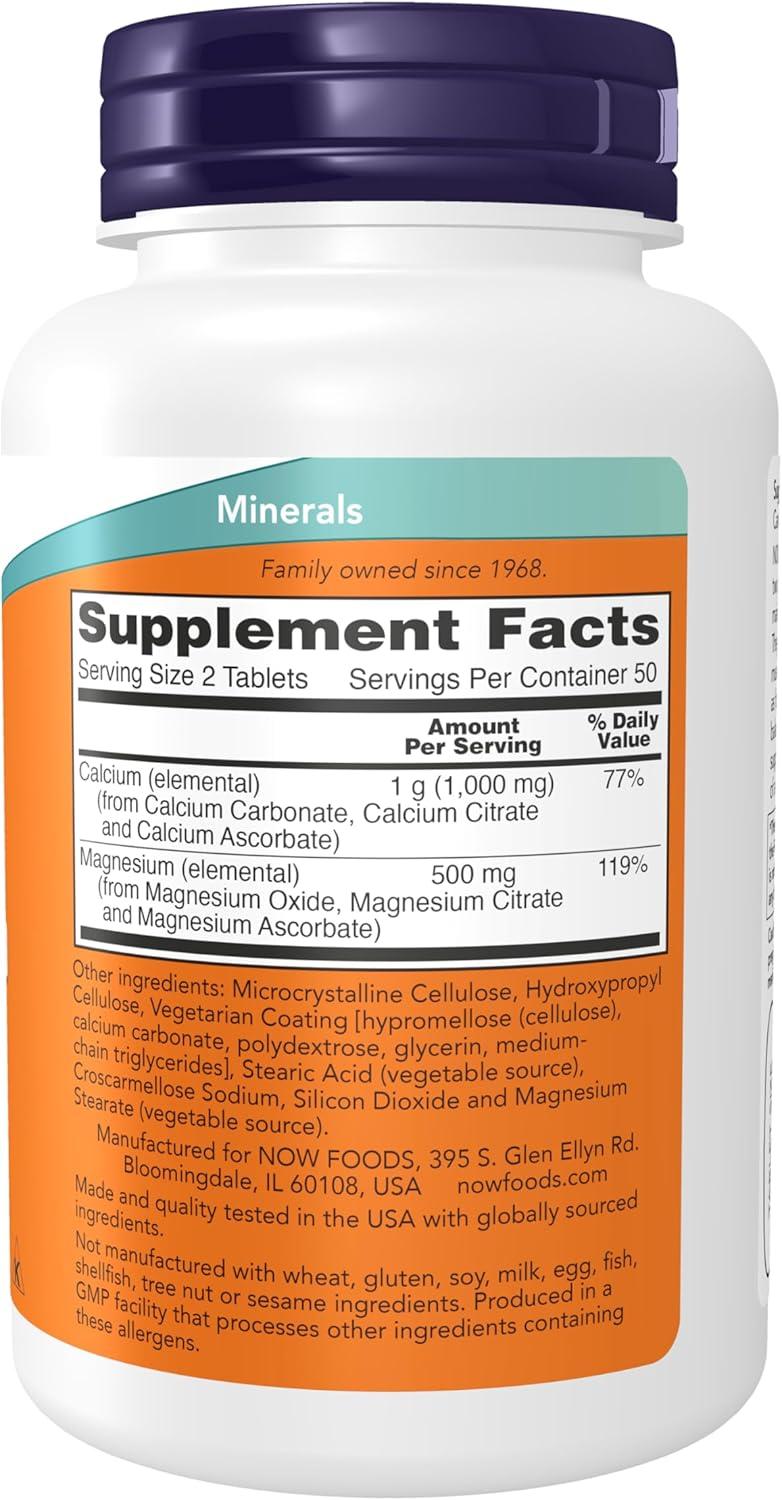 NOW Foods Supplements, Calcium & Magnesium 2:1 Ratio, High Potency, Supports Bone Health*, 100 Tablets(100 Count (Pack of 1))