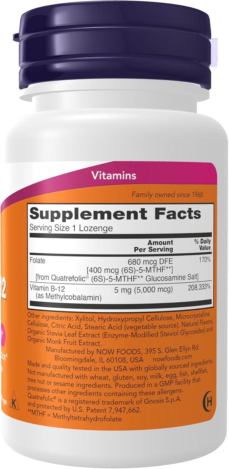 NOW Foods Supplements, Methyl B-12 (Methylcobalamin) 5,000 mcg, Nervous System Health*, 120 Lozenges(120 Count (Pack of 1))