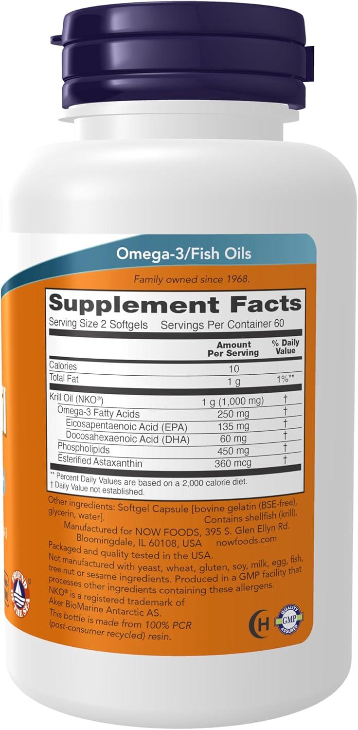 NOW Foods Supplements, Neptune Krill Oil 500 mg, Phospholipid-Bound Omega-3, Cardiovascular Support*, 60 Softgels(120 Count (Pack of 1))
