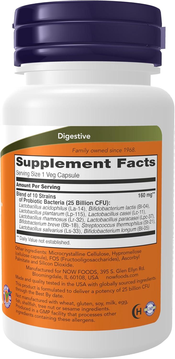 NOW Foods Supplements, Probiotic-10™, 25 Billion, with 10 Probiotic Strains, Dairy, Soy and Gluten Free, Strain Verified, 100 Veg Capsules(30 Count (Pack of 1))