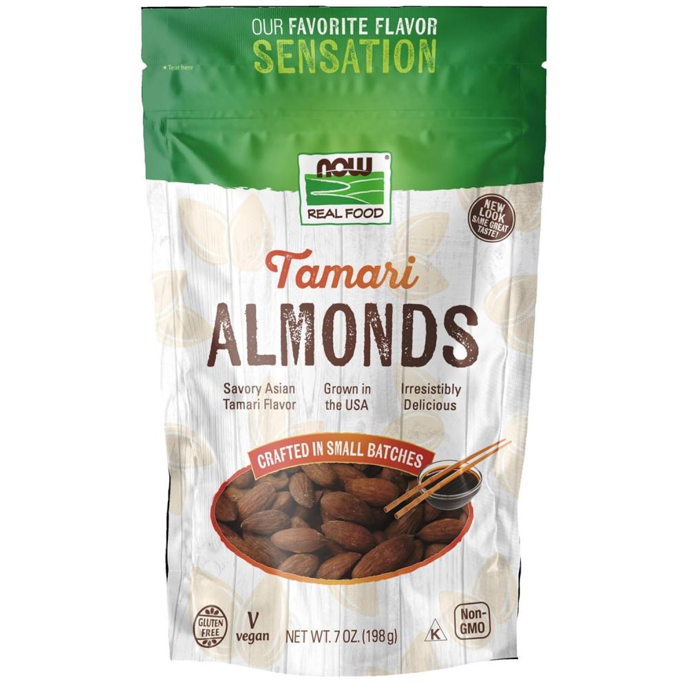 NOW Foods, Tamari Almonds, Flavor Sensations, Savory Asian Tamari Flavor, Gluten-Free and Certified Non-GMO, 7-Ounce (Packaging May Vary)(7 Ounce (Pack of 1))