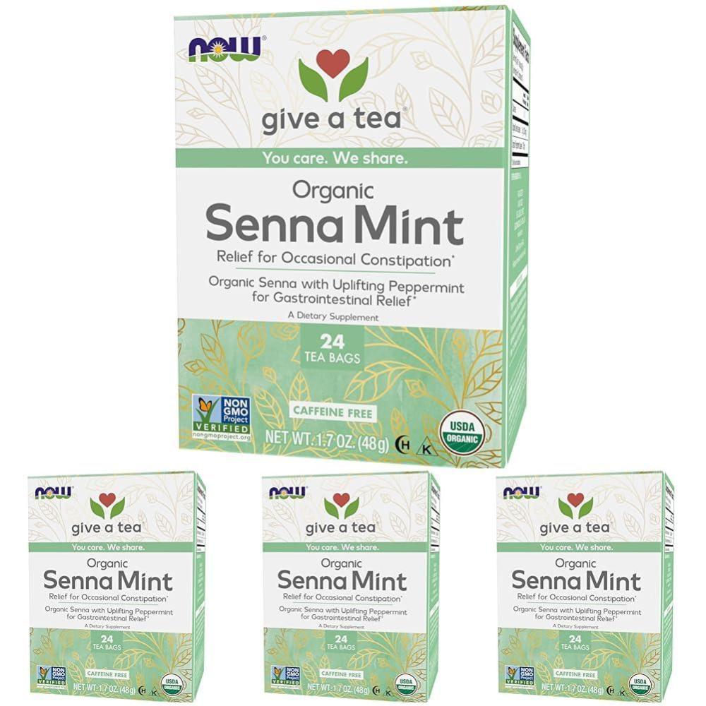NOW Give a Tea, Organic Senna Mint Tea, 24 Tea Bags(24 (Pack of 4))