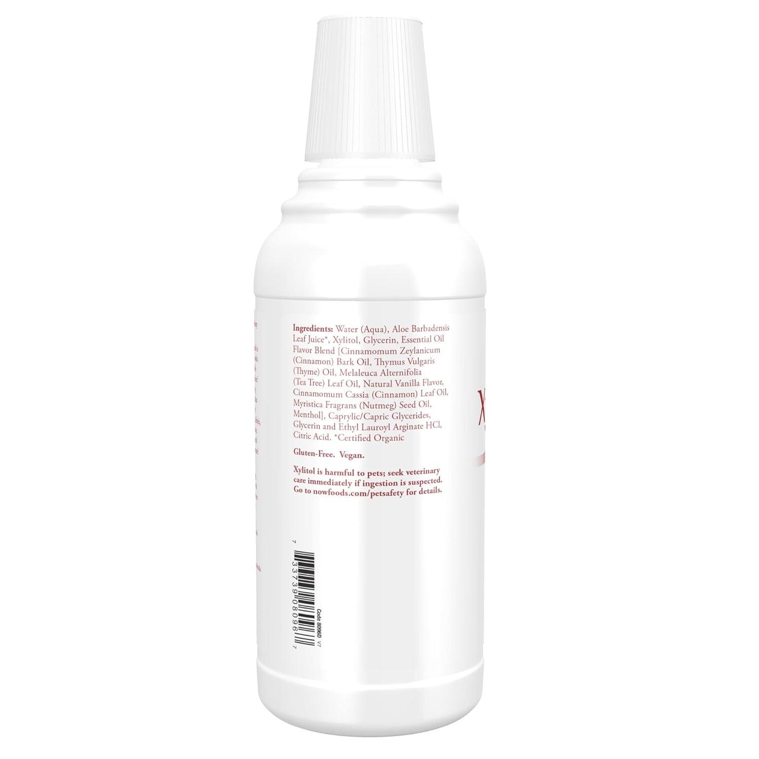 Condition: Need for a healthy rinse to keep breath fresh and promote oral hygiene. Solution: NOW® XyliWhite™ Mouthwash is an effective fluoride-free oral rinse that works in unique ways to help you achieve a smile that’s healthier and brighter than ever before! XyliWhite™ Mouthwash gets its cleansing properties from xylitol – a naturally occurring sugar alcohol that has been shown in clinical studies to help promote oral hygiene, effectively rinsing debris, such as food particles, from mouth surfaces. By helping to maintain the mouth’s normal balance, xylitol also helps to keep the enamel surface of teeth clean and fresh. Xylitol is harmful to pets; seek veterinary care immediately if ingestion is suspected. Learn more about pet safety. Ingredients: Water (Aqua), Aloe Barbadensis Leaf Juice*, Xylitol, Glycerin, Natural Essential Oil Flavor Blend [Mentha Piperita (Peppermint) Oil, Eucalyptus Globulus (Eucalyptus) Oil, Thymus Vulgaris (Thyme) Oil, Melaleuca Alternifolia (Tea Tree) Leaf Oil, Menthol, Mentha Spicata (Spearmint) Oil, Gaultheria Procumbens (Wintergreen) Leaf Oil], Caprylic/Capric Glycerides, Glycerin and Ethyl Lauroyl Arginate HCl, Citric Acid. *Certified Organic NOW® Solutions products are not tested on animals.