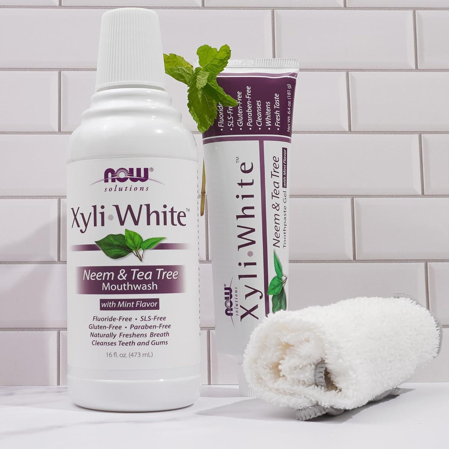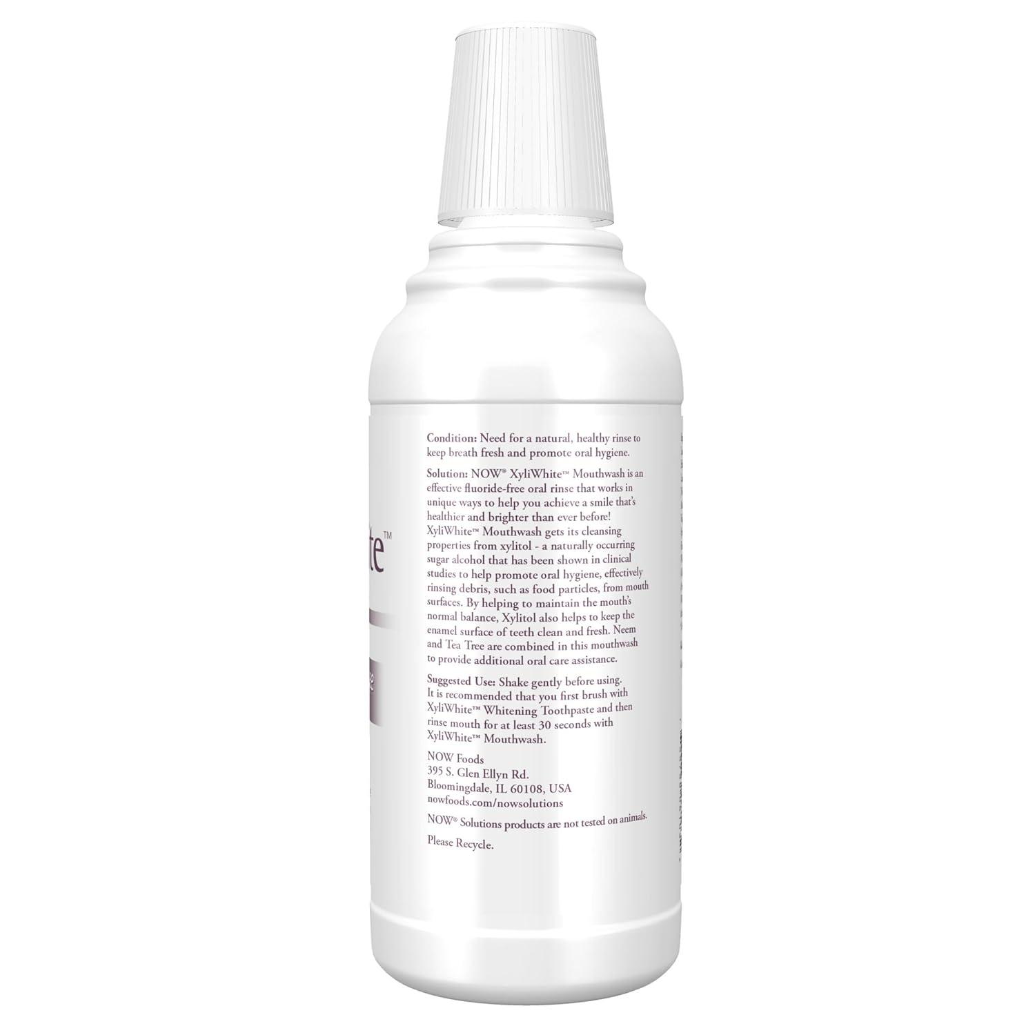 NOW Solutions, Xyliwhite™ Mouthwash, Refreshmint Flavor, Naturally Freshens Breath, Cleanses Teeth and Gums, 16-Ounce(Neem and Tea Tree)