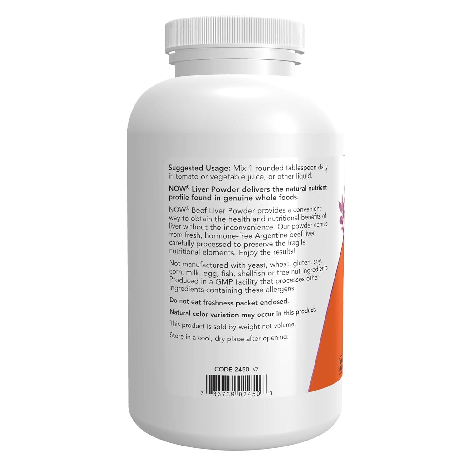 NOW Supplements, Liver Powder derived from Fresh, Hormone-Free Argentine Beef Liver, 12-Ounce