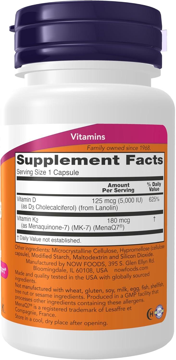 NOW Mega D-3 & MK-7 combines vitamins D-3 and K-2, two nutrients extensively researched for their roles in the health of bones, teeth and the cardiovascular system.* Vitamin D-3 works with calcium to support bone health, and more recent studies indicate it’s important for immune system health as well.* MenaQ7 MK-7 is a unique soy-free, bioavailable form of vitamin K-2 that plays a critical role in arterial health through its ability to support proper calcium metabolism in blood vessels and arteries.* Vitamin K-2 is also important for the formation of strong, healthy bones.* MenaQ7 is a registered trademark of Lesaffre et Compagnie, France.